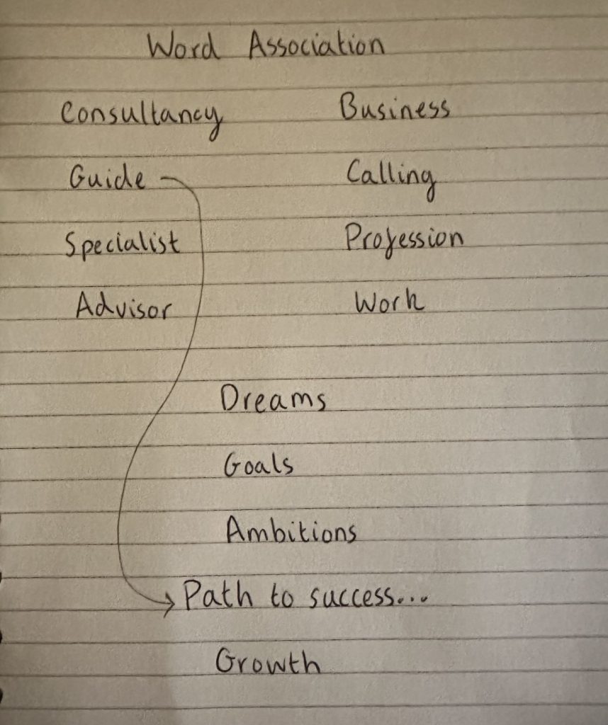 The first phase when creating logo options was to explore words associated with business and consultancy, these lead to the words goals, growth and dreams. With these words in mind, along with the final mood board from the previous post, first drafts of the logo were created.
