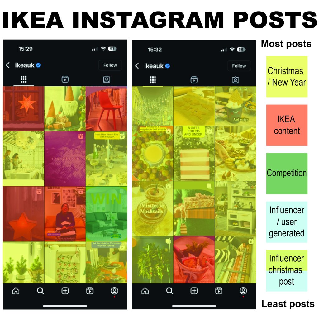 Whereas IKEA’s social media posts included no content by influencers but still showed a large amount of Christmas posts or posts about their product range.