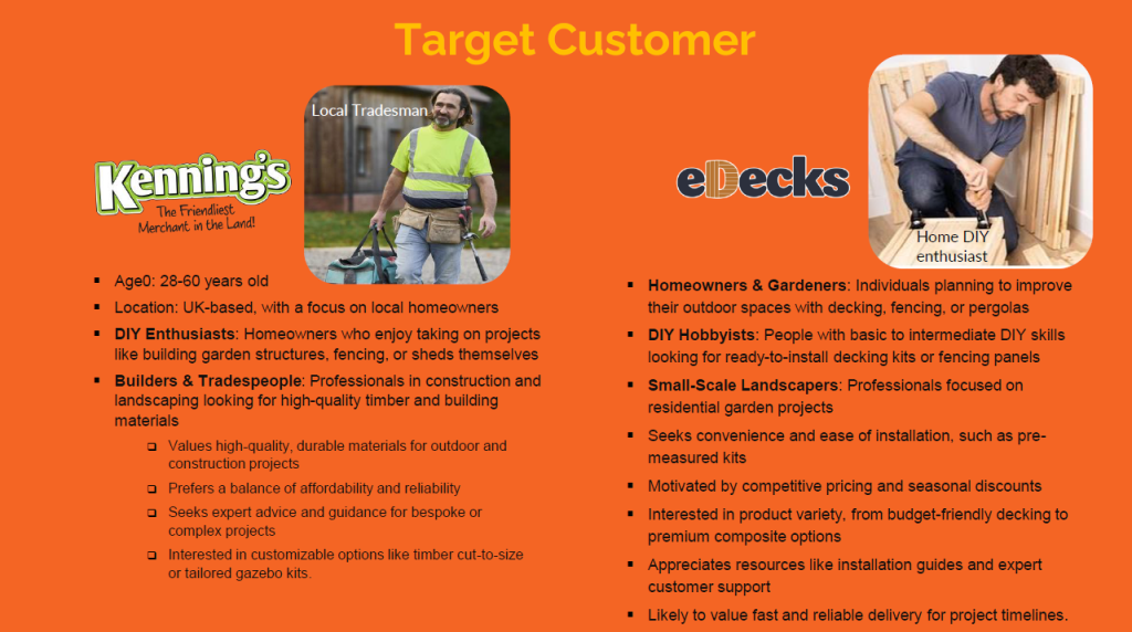 Based on the brief given by eDecks their target audience is homeowners/gardeners, DIY hobbyists or small-scale landscapers.